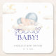 The "Santa Baby" shower square paper coaster has a sweet, festive design, featuring a baby in a blue Santa hat with soft clouds and stars. It uses playful red script and pastel tones, creating a cosy holiday feel, perfect for a winter baby shower.