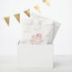 The "Santa Baby" shower favour bag has a sweet, festive design, featuring a baby in a pink Santa hat with soft clouds and stars. It uses playful red script and pastel tones, creating a cosy holiday feel, perfect for a winter baby shower.