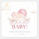 The "Santa Baby" shower square sticker has a sweet, festive design, featuring a baby in a pink Santa hat with soft clouds and stars. It uses playful red script and pastel tones, creating a cosy holiday feel, perfect for a winter baby shower.