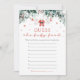 The Red Santa Baby Christmas Baby Clothes Guess The Baby Food Game brings festive fun to your holiday-themed baby shower! Featuring a cute design with red Santa baby clothes, delicate red snowflakes, and touches of winter greenery eucalyptus, this game challenges guests to guess different baby food flavours based on look, smell, or taste. It’s a playful activity that captures the cosy holiday spirit and adds a joyful, interactive element to your celebration as guests compete to identify each flavour correctly. Perfect for creating fun memories and laughter while celebrating your little one’s arrival!