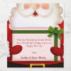 Cute jolly Santa Claus hold a gift wrapped with green ribbon. Add your text to create your own wine label. Personalise with your text to create the perfect label for your Christmas table or for gifts.