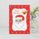 Christmas Santa Claus on white and red background flat holiday card. Texts can be customised.