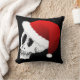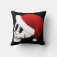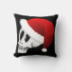A skull wearing a Christmas Santa Claus hat on a black background.