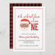 Oh what fun, it is to be One! Christmas Santa first birthday party invitation with watercolor santa, christmas and buffalo plaid back.