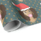 Christmas Santa Hat, Black Woman, Gum, Stars, Teal Wrapping Paper