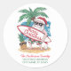 Christmas Santa riding a dinosaur Return Address Classic Round Sticker
