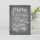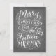 Stylish save the date in the form of a Christmas card featuring hand lettering typography with a faux chalkboard background.