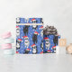 Christmas Schnauzers in Santa Hats Blue Snowflakes Wrapping Paper