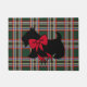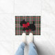 A Scottish Terrier with a big red bow decorates this festive doormat.