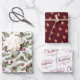 This set of Christmas wrapping paper sheets includes 3 complementary designs: 1 sheet with a rustic woodland pattern of pine cones, pine boughs and other greenery, and burgundy red holly berries, on a white background; 1 sheet with a dark burgundy red watercolor background and gold pine cones; and 1 sheet with elegant script calligraphy “Merry Christmas” and templates for your family name and year date. Check out the collection for many matching products, or contact me through Zazzle Chat if you would like additional matching products or other colorways.