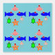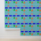 This awesome patterned wallpaper features a collection of sea creatures wearing santa hats. The marine animals include a pair of blue fish, a cheeky looking little pink crab, a yellow starfish, a sparkly jellyfish and a cute little green turtle.