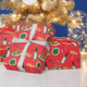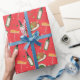 Christmas seamless pattern in retro style. Christmas party table with turkey and champagne on a red background with snowflakes.