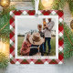 Christmas ornament featuring your photo framed on a cheerful red, green and white seasonal plaid background. Personalise with your name and the year in simple red typography.