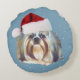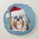 Christmas, Shih Tzu Dog, Santa Hat Round Cushion