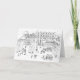 Black line on white card - a Christmas scene of shoppers, carol singers and buskers in Covent Garden, London