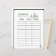 Great for individuals who wish to stay organised with their Christmas shopping list and planning. Here is a simplistic yet elegant planner page where you can jot down the name of the individual your shopping for and keep track of the gift or items you've purchased for them. Add details like clothing sizes and where the store you need to go to purchase their gift. This stylish planner page includes a name column, the Store and a column where you can add a few details. Find calm evergreen tree accents and fonts that are easy to read. A page to take with you on your shopping trips or utilise as soon as you get home. Take the stress out of your shopping trips.