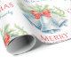 Elegant watercolor three silver bells and a big red bow with stylized green foliage Merry Christmas repeat patterned wrapping paper. Personalize with your own family name or message. Original hand watercolor painting and design by Sarah Trett for www.mylittleedenweddings.com
