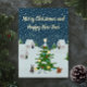 Christmas snow village with christmas tree foil holiday card
