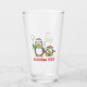 A little penguin cartoon with snowball and a fainted one. Both wearing green scarfs and santa hats.