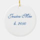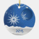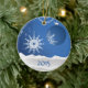 This beautiful scene in blue and white features snowflake and ball ornaments hanging above a snowy ground. You may change the year to a name or anything you like - just click on "Customise it", then "Change text". On the reverse please change the text or upload one of your own photos (or both). Choose your ornament style and shape.