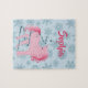 Christmas Snowflake Cute Unicorn Blue Pink Jigsaw Puzzle