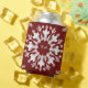 Red Christmas ornament featuring intricate white snowflake detail, surrounded by festive decorations and a snowy setting. Perfect for holiday celebrations and festive decorations