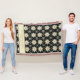 Christmas Snowflake Faux Knit Pattern Family Name and established date cosy throw blanket. Black, cream and gold.