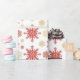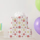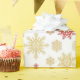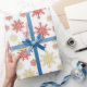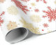 Colourful festive Christmas snowflake wrapping paper featuring, a red and gold snowflake pattern.