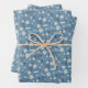 Wrap your holiday gifts in winter charm with this personalised blue snowflake wrapping paper. A soft denim-blue background sprinkled with white snowflakes and silver accents gives this design a cosy, classic Christmas feel.