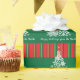 Get Christmas wrapped up with this unique white snowflake tree and red and green striped patterned Christmas wrapping paper. Customise with your own greeting and company or family name. Currently reads Happy Holidays from the Smiths. Uniquely designed by Sarah Trett.