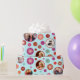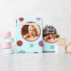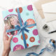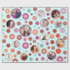 Snowflake wrappping paper with space for fourteen favourite family photos. Aqua background.