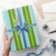 Christmas Snowflakes Blue & Green Stripe Pattern Wrapping Paper