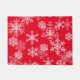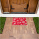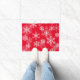 Doormat is shown with a red background colour and a festive Christmas holiday snowflakes print.