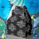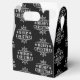 This favour box is shown in a festive Christmas holiday snowflakes print in the colour Black.