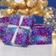 Beautiful white and blue snowflakes on gradient blue and purple background