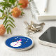 This fun keychain features a cute Christmas snowlady wearing a pretty pink floral hat and pink buttons. She has rosy cheeks and a big smile. Her stick like arms are up in the air and she is juggling with snowballs. There is text between them that says "snowballs". This funny design is sure to amuse everyone this festive season.