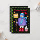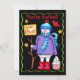 Invite your guests to your Christmas or other winter holiday party (or other event) with this cute snowman snow kid "we rock" invitation. Great for both adult and kid parties. The snowman is wearing a turquoise and blue toboggan and scarf and a lavender purple sweater and is holding a sign that says "we rock". A redbird is flying close by and stars are on the black background. A peppermint striped bucket holds a pile of snowballs. The words "You're Invited are customisable. The other side is complete and ready for you to customise for your Christmas or winter event with easy to customise template fields. A red signs says "Snowmen Rule" This design is original art by Phyllis Dobbs and comes on coordinating products in this store. Fully customise for your event for Christmas or winter events.