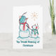 This sweet Christmas Card shows an adult snowman pointing to the Christmas Star to a child snowman. This card is not only cute, it depicts the true meaning of Christmas.