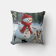 Christmas Snowman Ice Skating With Dog Cushion