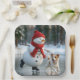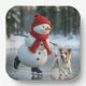 Christmas Snowman Ice Skating With Dog Paper Plate