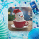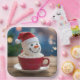 A charming snowman wearing a festive Santa Claus hat, delightfully nestled in a warm cup of hot chocolate