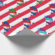 Christmas Snowman On Stripes and Snowflakes Wrapping Paper