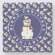 Christmas Snowman Pattern Blue Name Marble Stone Coaster