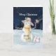 Christmas Snowman Rabbit Bird Hat Watercolor Night Holiday Card