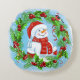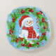 Christmas Snowman with Holly Wreath and a Bird Round Pillow