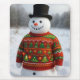Christmas Snowman Wearing an Ugly Sweater Mouse Pad