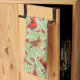 Endearing illustrated cardinals in snowy winterberry trees flock this lovely kitchen towel. Celery Green background. See more Christmas home decor with this pattern. By artist/surface pattern designer L. Diane Johnson.