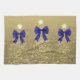 Christmas Sparkling Trees Gold Faux Navy Bow Tea Towel
