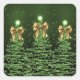 Christmas Sparkling Trees Green Faux Gold Bow Square Sticker