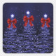 Christmas Sparkling Trees Navy Blue Faux Red Bow Square Sticker